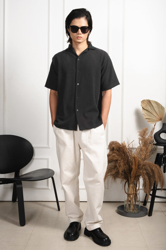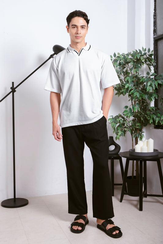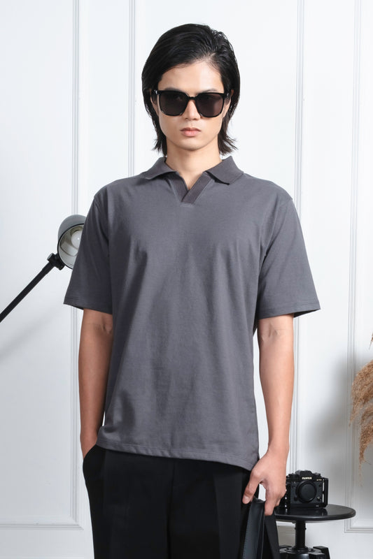 Relaxed V-Neck Polo Shirt - Dark Gray