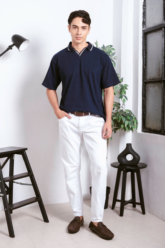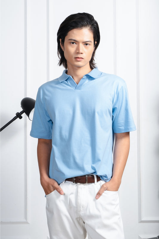 Relaxed V-Neck Polo Shirt - Powder Blue
