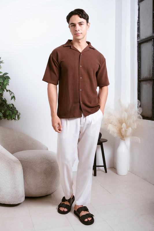 Slim-Fit Knitted Polo Shirt - Cedar Brown