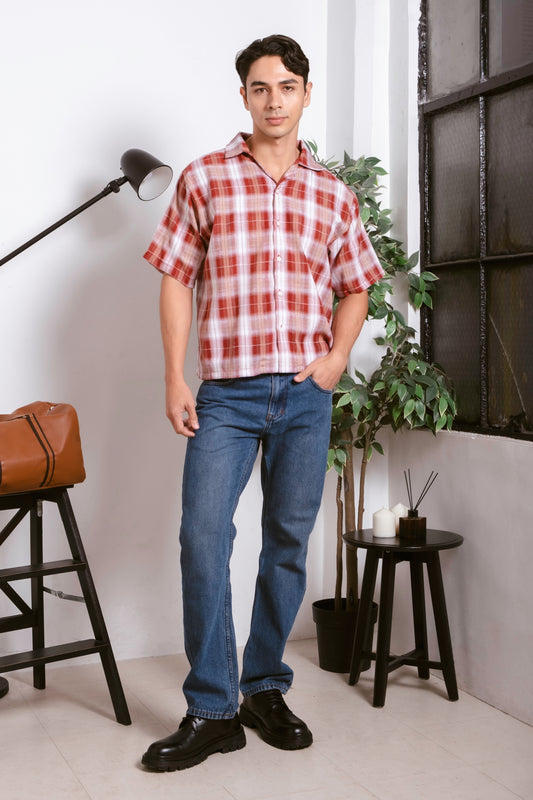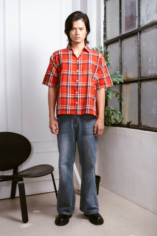 Vintage Boxy Cropped Shirt - Crimson Red