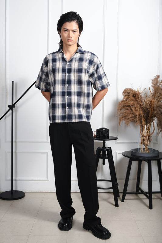 Vintage Boxy Cropped Shirt - Off White/D.Blue