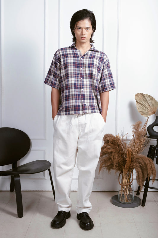 Vintage Boxy Cropped Shirt - White/D.Blue/Red