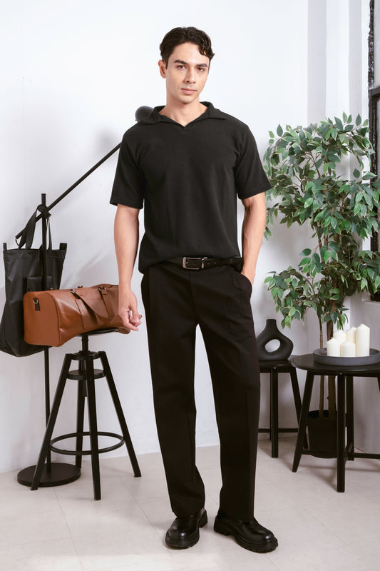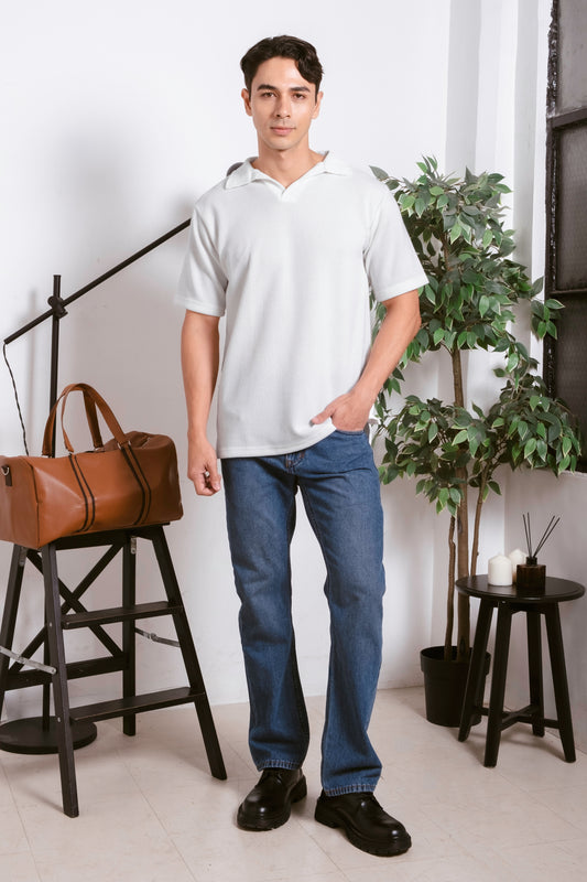 Knitted Open Collar Polo Shirt - Tuscan Cream