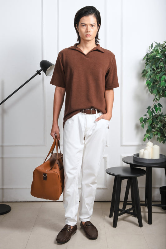 Knitted Open Collar Polo Shirt - Cedar Brown