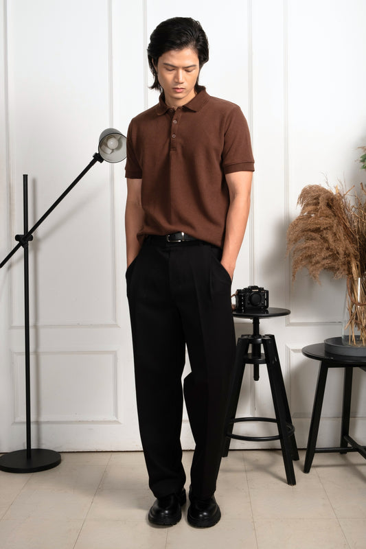Slim-Fit Knitted Polo Shirt - Cedar Brown