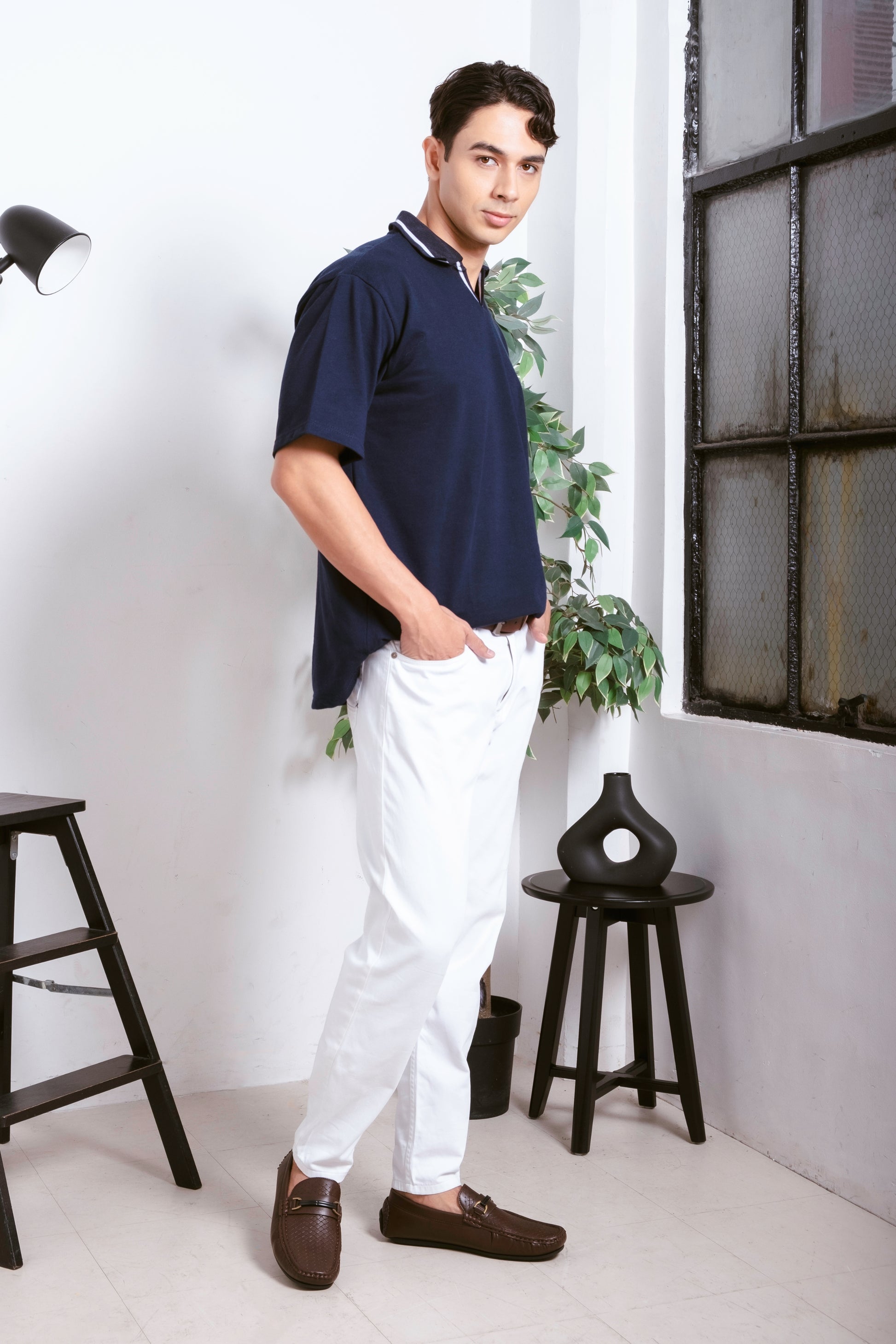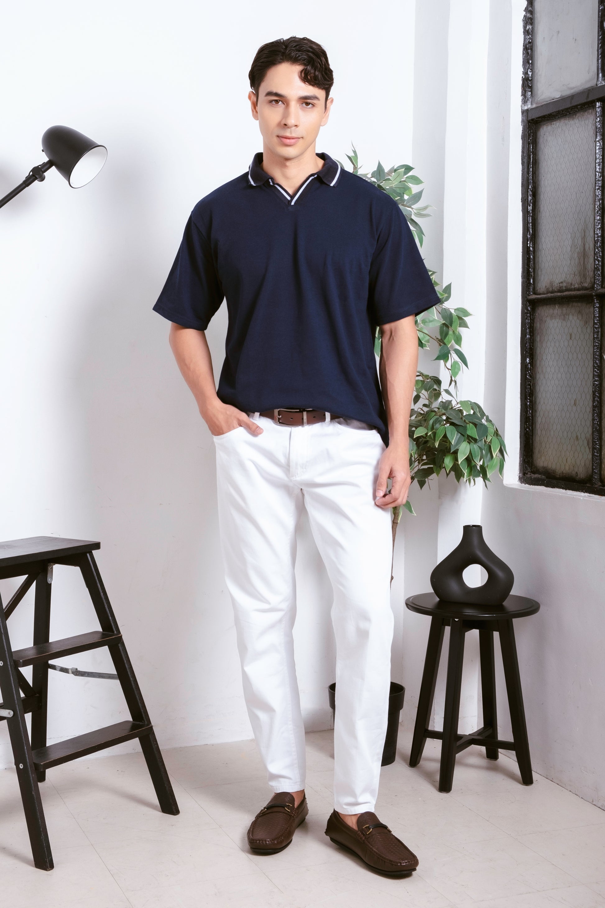 A testament to the seamless fusion of style and comfort. Crafted from a premium Oxford knit fabric, this polo shirt exudes sophistication with a touch of relaxed elegance. The intricately pattern not only adds a distinctive texture but also reflects the meticulous attention to detail in its creation. The V-neckline imparts a contemporary flair, while the superior quality of the knit ensures a luxurious and breathable feel against the skin.