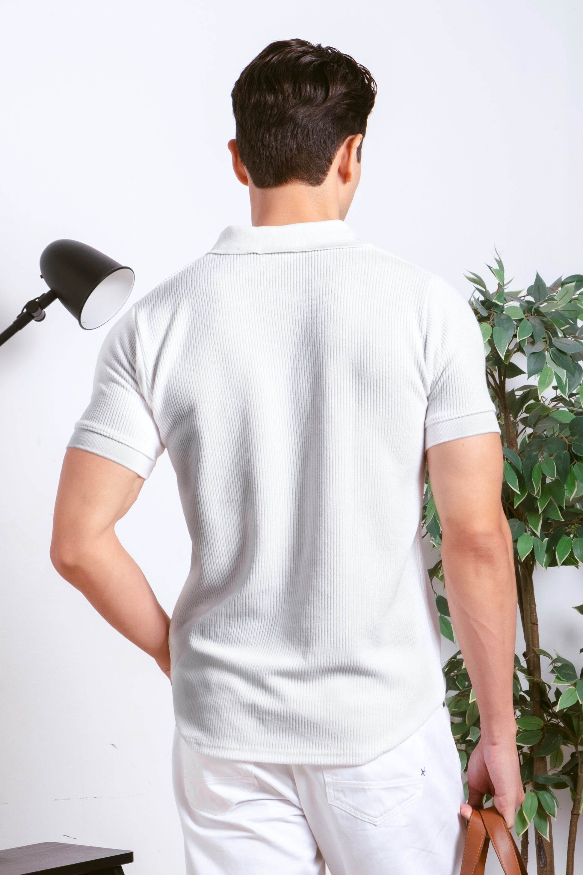 Elevate your style with our Slim-Fit Knitted Polo Shirt. Designed for a sleek, modern silhouette, it features a refined 3-button placket and a unique 2x2 rib knit texture for a touch of sophistication. Crafted from a premium cotton-polyester blend, this versatile piece offers all-day comfort with a classy, polished finish.